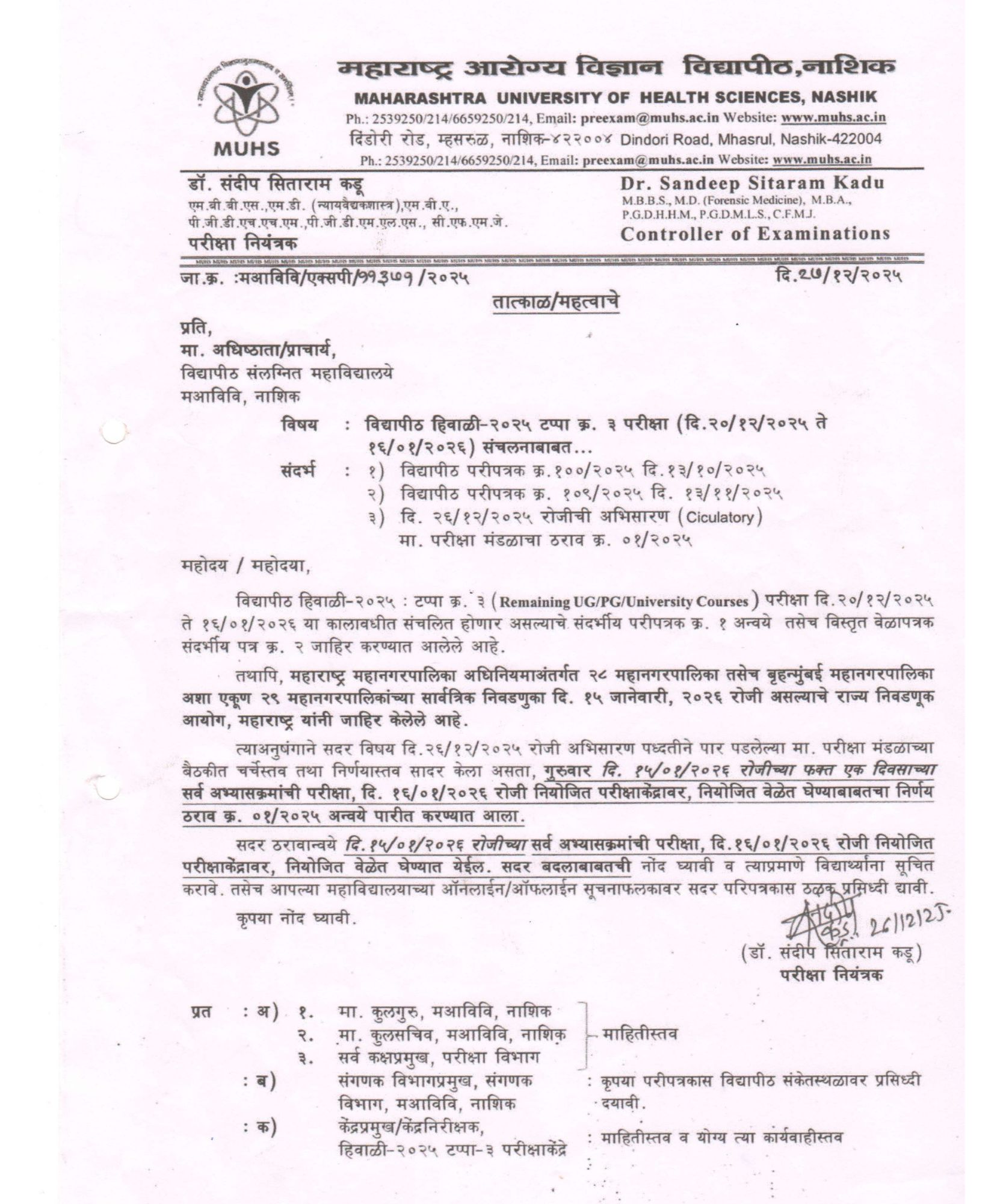 MUHS EXAM NOTICE