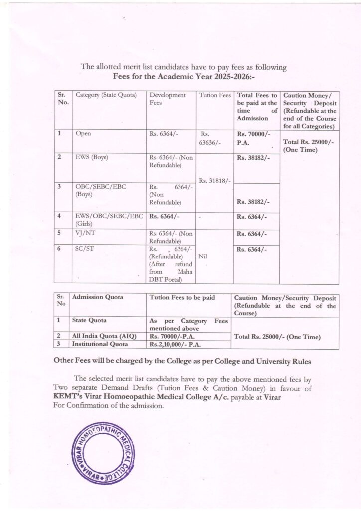 VHMC – Virar Homoeopathic Medical College is allied to the Maharashtra University of Health Sciences. It was established in the year 1989. It aims to provide homeopathic knowledge to students residing in rural areas at the most affordable prices.